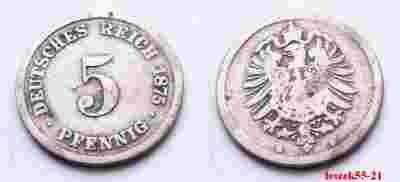 NIEMCY IMPERIUM 5 PFENNIG 1875 B