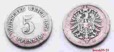 NIEMCY IMPERIUM 5 PFENNIG 1876 E RZADKA