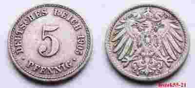 NIEMCY IMPERIUM 5 PFENNIG 1905 A