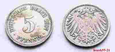 NIEMCY IMPERIUM 5 PFENNIG 1907 A