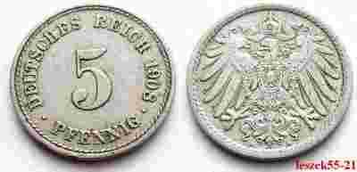 NIEMCY IMPERIUM 5 PFENNIG 1908 A