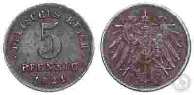 Niemcy - moneta - 5 Pfennig 1921 D - ŻELAZO