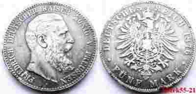 NIEMCY PRUSY 5 MARK 1876 A FRIEDRICH DUŻA
