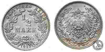 Niemcy - srebro - 1/2 Marki 1915 E - 3 - MENNICZA
