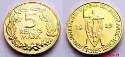 NIEMCY WEIMAR 5 REICHSMARK 1925 A RYCERZ - PIĘKNA