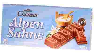 Słodki smak czekolady to nie wszystko czego oczekują prawdziwi wielbiciele słodkości. Pełnomleczna czekolada musi posiadać idealną konsystencję, dzięki której nasze pyszności rozpływają się w ustach, a nie w dłoniach. Jej zapach musi być przyjemnym połączeniem kakao i czekolady. Naszą propozycją spełniającą wszystkie te warunki jest niemieckiego pochodzenia pełnomleczna czekolada Alpen Sahne marki Château. Wspaniała chwila przyjemności może trwać teraz bardzo długo, gdyż za niewielką cenę otrzymujesz 200 g czekolady, która rozpieści Twoje zmysły. Kremowy, delikatny smak tej czekolady z alpejskiego mleka, który nie jest mdlący, ale za to bardzo wciągający. Sięgając po jedną kostkę wiesz, że kolejna kostka to tylko kwestia czasu. Daj się porwać pełnomlecznej czekoladzie Alpen Sahne Château i poczuj jak smakuje ten nieziemski przysmak. Skład : 33% kakao, cukier, masło kakaowe, śmietana w proszku 16%, 5% mleko w proszku, serwatka w proszku, laktoza, lecytyna sojowa, aromat waniliowy.