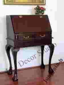 J&J Decor Studio zaprasza na aukcje! Przedmiotem aukcji jest przepiękny sekretarzyk z dwoma szufladami pod spodem, wewnątrz sekretarzyka liczne schowki i szufladki. Sekretarzyk w całości wykonany jest z litego drzewa mahoniowego w kolorze ciemnobrązowym (ciemny kasztan delikatnie przechodzący w mahoń). Sekretarzyk jest ciężki i stabilny. Jest bardzo solidnie i precyzyjnie wykonany. Główny jego atut to piękne, ręcznie wykonane zdobienia oraz szereg licznych szufladek. Mosiężne uchwyty. Sekretarzyk jest nowy.
