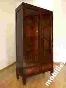 Mamy zaszczyt zaprezentować Państwu piękną witrynę.Mebel powstał około 1905 roku i wykonany został w stylu secesyjnym,do jego budowy natomiast użyto drewna dębowego.Stan zachowania witryny oceniamy jako dobry.