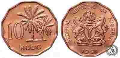 Nigeria - moneta - 10 Kobo 1991 - MENNICZA
