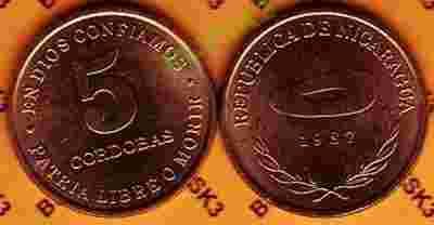 NIKARAGUA /KM-60/ 5 KORDOBA 1987 Stan Monety I/-I