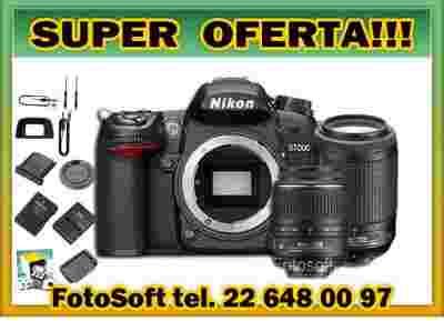 Zestaw zawiera : aparat, obiektyw 18-55VR, obiektyw 55-200VR, ładowarkę, akumulator, kabel usb, pasek na ramię, oprogramowanie i instrukcję w języku polskim.