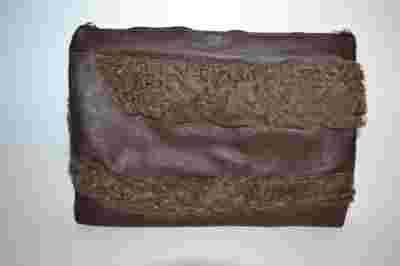 Torebka damska uszyta z łatek naturalnej skóry licowej w kolorze brązowym połączonej z naturalnym futrem.