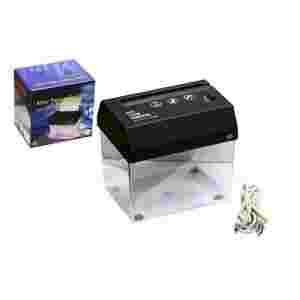 Mała, poręczna niszczarka do dokumentów z dodatkową możliwością otwierania listów – bez problemu mieści się na biurku. Niszczarka tnie jednorazowo kartkę na cienkie paski o szerokości 3,9mm (arkusz A4 należy złożyć na pół). Urządzenie można zasilać z portu USB, czterema bateriami AA lub zasilaczem DC 5V.