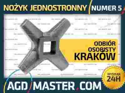Nożyk nr 5 jednostronny do maszynki do mielenia o wymiarach: wielkość otworu - 9 mm x 9 mm, długość ramion - 47 mm, grubość otworu/komory - 9 mm.