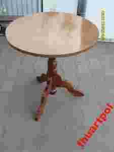 DREWNIANA PODSTAWE STOLIKA na trójnogu z blatem płyta dorabiany przez jakiegoś domowego stoolarza więc okrąły blat nie jest tak do końca okrągły trzeba go dociąc od nowa