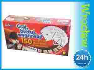 Opis produktu: 150 gier w karty i kości oraz łamigłówek. Graj, blefuj, wygrywaj! Wielka kolekcja najpopularniejszych gier w karty i kości oraz łamigłówek. Zagraj w najrozmaitsze gry w kości, gry karciane, frapujące łamigłówki, zakosztuj hazardu przy użyciu kości pokerowych, odkryj na nowo Yatzy wraz z bloczkiem wyników, wpraw w osłupienie innych graczy za sprawą 30 niezwykłych sztuczek karcianych... Atrakcyjna kolekcja gier w karty i kości oraz łamigłówek ze skórzanym kubkiem do gry w kości w komplecie!Gra przeznaczona: dla od 1 do X graczy w w wieku powyżej 8 latZawartość pudełka: 1 skórzany kubek do gry w kości, 5 kości oczkowych, 5 kości pokerowych, 1 talia do skata, patyczki do gry, 1 bloczek wyników Yatzy, instrukcja do gier