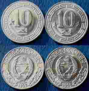 NORTH KOREA, 10 CHON, 2 ODMIANY, MENNICZE