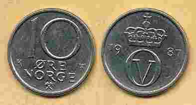 Norwegia 10 Ore - 1987r ... Monety