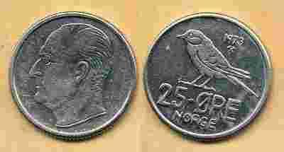Norwegia 25 Ore - 1973r ... Monety