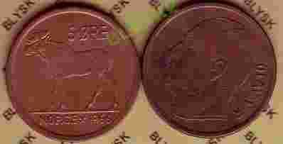 NORWEGIA /405/ 5 ORE 1966 r.Łoś