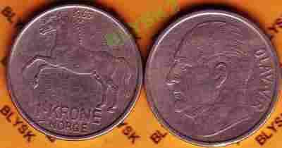 NORWEGIA /409/ 1 KRONE 1970 r.Koń