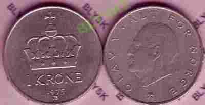 NORWEGIA /419/ 1 KRONE 1975 r.