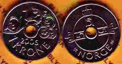 NORWEGIA /462/ 1 KRONE 2006 r. Z otworem Ptaszek