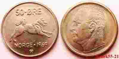 NORWEGIA 50 ORE 1969 PIES