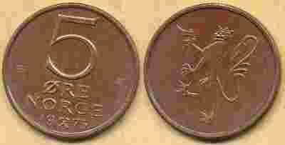 Norwegia 5 Ore - 1973r ... Monety