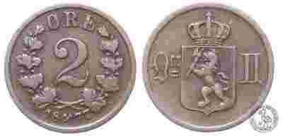 Norwegia - moneta - 2 Oere 1877 - RZADKA
