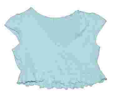 Rozmiar z metki: 10-11 lat, 146 cm. Fajna bluzeczka dla dziewczynki, krótka- idealna na lato, przód bluzeczki ozdobiony małymi falbankami, dół zakończony większą falbanką. Przyjemny w dotyku materiał. Kolor: niebieska. Skład materiału: 100 % bawełna. POLECAM.
