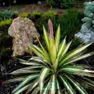 Ciekawa, rzadko spotykana odmiana juki karolińskiej, o bardzo atrakcyjnym ubarwieniu.