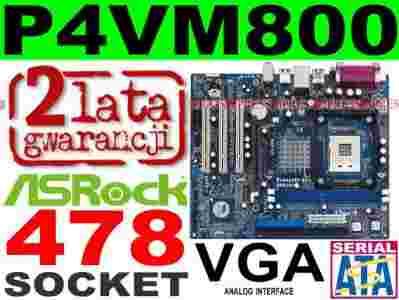 NOWA PŁYTA ASROCK P4VM800 s478 AGP VGA = GWAR FVAT
