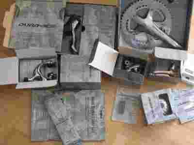 Okazja jedyna w swoim rodzaju: fabrycznie nowa, w oryginalnych pudełkach, nieużywana i kompletna (bez łożysk suportu; pasują dowolne Shimano) grupa Dura-Ace 7800! Kaseta, łańcuch, linki i pancerze fabrycznie zaplombowane. Przednia przerzutka z naklejką pozycjonującą. Klamki i jeden z hamulców były przymierzone do roweru, lecz nigdy nie użyte (widać np. po kolorze smaru), pozostałe - nigdy nie wyjmowane z pudełek.