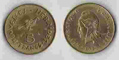 NOWE HEBRYDY 1970 5 FRANCS BEZ I.O.E.M.