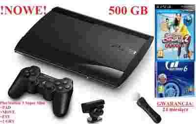 NOWE! PS3 500GB Super Slim+MOVE+PAD+2 GRY 24m GW!