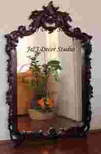 Przedmiotem aukcji jest śliczne lustro, w ramie z litego drzewa mahoniowego w kolorze ciemnobrązowym (ciemny kasztan delikatnie przechodzący w mahoń). Lustro jest bardzo solidnie i precyzyjnie wykonane. Jego główny atut to piękne rzeźbienia. Lustro jest nowe.
