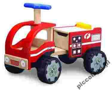 Ten wspaniały drewniany jeździk, imitujący wóz strażacki jest idealnym pierwszym pojazdem dla dziecka, które odpychając się stopami może przemieszczać się z miejsca w miejsce. Dodatkowo jeździk posiada pod siedzonkiem pojemny bagażnik na niezbędne przedmioty, z którymi mały dzielny strażak nie zechce się rozstawać. Pojazd ma możliwość delikatnego skrętu w prawo czy w lewo, dając dziecku poczucie niezależności.