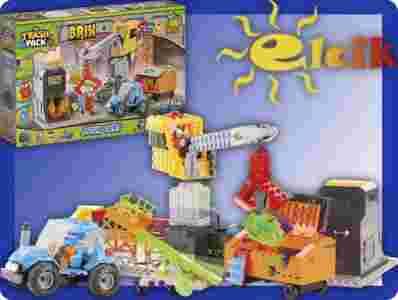 Dźwigiem można wrzuciś Śmieciaka do kontenera, albo zagrać w grę zręcznościową i ćwicząc celność wystrzelić Śmieciaka z wyrzutni do kontenera.