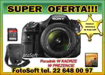 Zestaw zawiera : aparat, obiektyw, torba, karta pamięci SanDisk 8gb , poradnik " W Kadrze" ładowarkę, akumulator, kabel usb, pasek na ramię, oprogramowanie i instrukcję w języku polskim.