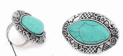 NOWOŚĆ- SYGNET RETRO - TURKUS W SREBRZE- OWAL