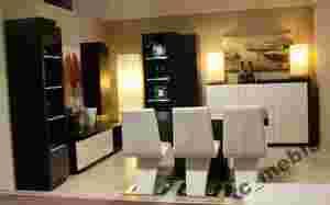 Meble wykonane są z  mdf-u lakierowanego na wysoki połysk oraz naturalnej okleiny dębowej