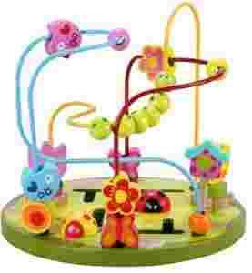 Na metalowych kolorowych prętach znajdują się piękne drewniane koraliki m.in ptaszki, motylki czy wesoła gąsiennica, które dziecko może przesuwać w dowolny sposób, ćwicząc przy tym precyzję ruchów palców i dłoni.