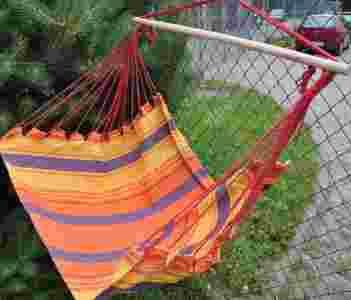 Nowy hamak-fotel widoczny na foto. Hamak-fotel jest solidnie wykonany i wygodny.