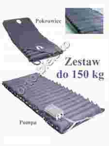 Materac zmiennociśnieniowy wykonany z wytrzymałego PCV o strukturze rurowej, dzięki temu materac posiada poprzeczne komory, które są cyklicznie,naprzemiennie wypełniane powietrzem poprzez pompę zasilającą. Zestaw ten, poprzez cykliczną zmianę punktów podparcia osoby leżącej minimalizuje ucisk na części ciała najbardziej narażone na powstawanie odleżyn i pozwala na uniknięcie, bądź zmniejszenie występowania uszkodzeń skóry. Ciało chorego jest stale i rytmicznie masowane.