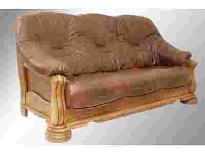 PIĘKNY REPREZENTACYJNY KOMPLET WYPOCZYNKOWY Z NATURALNEJ SKÓRY NA STELAŻU DĘBOWYM