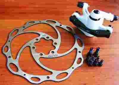 Wysokiej klasy, skuteczny, uniwersalny, mechaniczny hamulec tarczowy. W zestawie lekka tarcza hamulcowa o średnicy 160 mm, oraz komplet śrub niezbędnych do montażu zacisku i tarczy.
