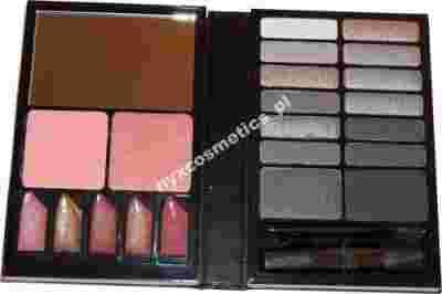 Zawiera 14 dobrze dobranych kolorystycznie mocno napigmentowanych cieni, 2 róże, 5 szminek,