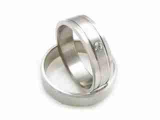 Obrączka wykonana ze stali nierdzewnej. W obrączce wykonano dwa rowki, a metal między nimi został lekko zmatowiony. W obrączce osadzony jest mały, kryształowy kamyczek.
