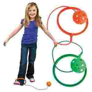Idealna zabawka sportowa. Bardzo wysoka jakość produktu. Obręcz zakłada się na nogę, linkę nalezy rozkręcić w taki sposób, aby przeskakiwać przez obracającą się wokół nogi kulę. Można skakać samemu lub z drugą osobą.
